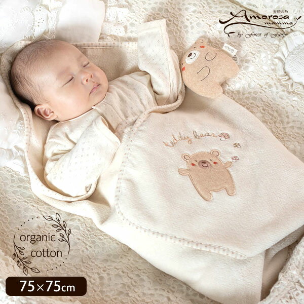 アモローサマンマ オーガニックコットン ベビー 森のクマさんのアフガン 69×69 | 敏感肌 オーガニック コットン 子供服 ベビー服 アフガン おくるみ 綿 ギフト ベビー用品 誕生日 プレゼント 服 生地 出産祝い