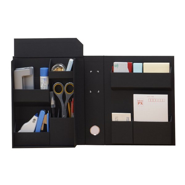 使わない時は本体内蔵の磁石でしっかりと箱が閉じられるので収納物を隠せる他に、被ってしまいがちなホコリが入るのも防げます。