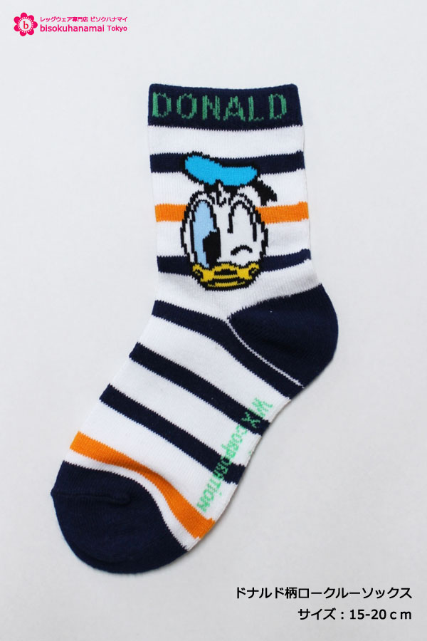 【KIDS】ドナルド柄ロークルーソックス (サイズ15-20cm) ディズニー ドナルドダック Donald Duck 靴下 子供 カワイイ socks Disney